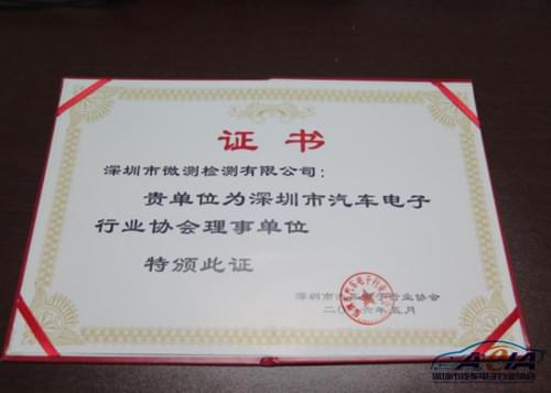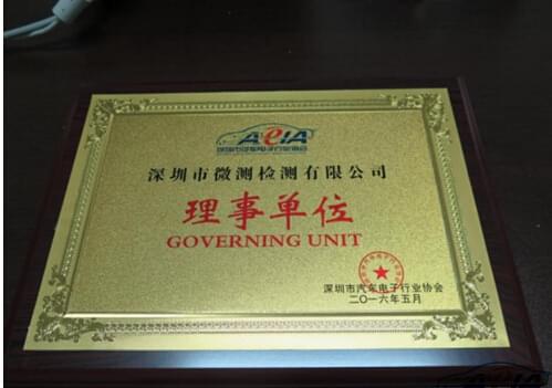 隨著互聯(lián)網(wǎng)給汽車行業(yè)帶來的活力,汽車電子產(chǎn)品多元化趨勢更為明顯,各類智能化的汽車電子產(chǎn)品層出不窮。為了順應(yīng)時代變化的潮流同時為規(guī)范汽車電子檢測行業(yè)標(biāo)準(zhǔn)做出貢獻(xiàn),微測檢測與深圳汽車電子協(xié)會進(jìn)行了更深入的合作,2016年6月15日,微測檢測正式成為汽車電子協(xié)會的理事會員!