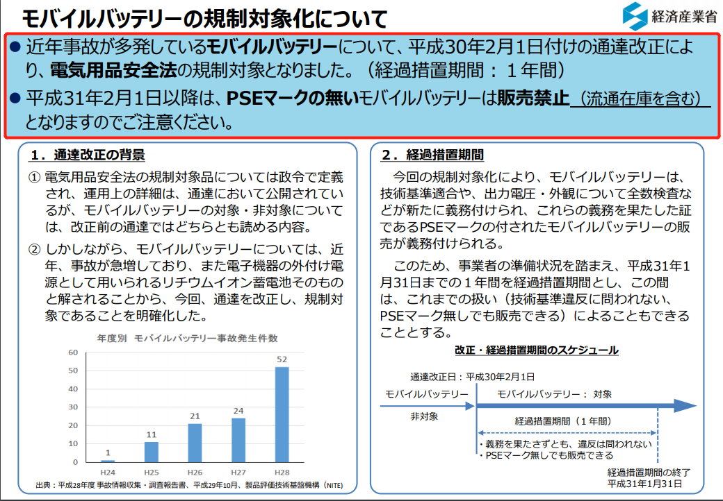 201921日之后禁止使用沒(méi)有PSE標(biāo)志的移動(dòng)電源(包括配送庫(kù)存)