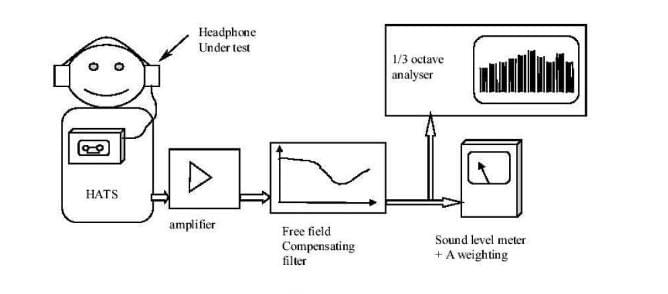 1、使用一個(gè)帶標(biāo)準(zhǔn)測試耳的仿真人工頭(HATS)在標(biāo)準(zhǔn)的聲學(xué)試驗(yàn)室內(nèi)進(jìn)行測試,測試信號有嚴(yán)格規(guī)定,必須按照標(biāo)準(zhǔn)IEC60268-1,對應(yīng)于不同的播放設(shè)備,測試信號應(yīng)根據(jù)標(biāo)準(zhǔn)里規(guī)定的相應(yīng)測試記錄電平進(jìn)行制作。在測試時(shí),測試設(shè)備的降噪系統(tǒng)必須關(guān)閉,音量調(diào)節(jié)到最大,音調(diào)調(diào)節(jié)到使耳機(jī)達(dá)到最大聲壓的位置,耳機(jī)裝置于標(biāo)準(zhǔn)人工耳上,人工耳內(nèi)裝置麥克風(fēng)以收集耳機(jī)所發(fā)出的聲音,以音頻分析儀分析紀(jì)錄各音頻的最大聲壓值(LAeq)。測試將重復(fù)五次,每次讀數(shù)需要測試至少30秒,最大聲壓級的測試結(jié)果將取這五次的平均值。而對于不帶耳機(jī)的單純的播放設(shè)備,則需測量并評估其最大輸出電壓。