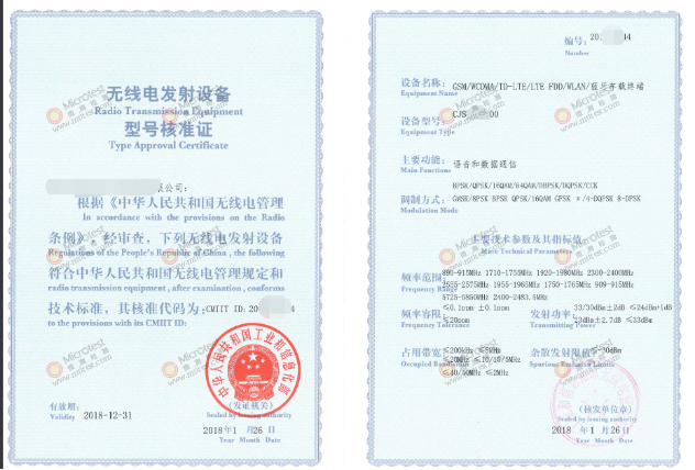 Microtest:SRRC認(rèn)證證書模板主要體現(xiàn):公司信息,設(shè)備基本信息信息和主要技術(shù)參數(shù)及證書有效期。證書模板請(qǐng)見(jiàn)下圖: