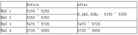 1.2018627日起,WLAN 5GHz頻段變更,允許信道帶寬增加到160MHz,放寬了對功率和天線增益的要求。