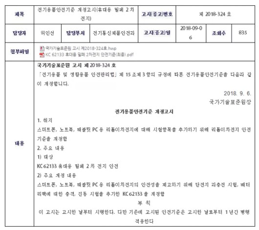 二、韓國KC認(rèn)證電池標(biāo)準(zhǔn)公告解析