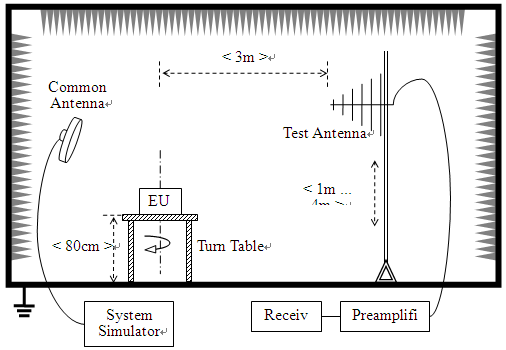 近期我們接到一個(gè)手機(jī)做輻射騷擾摸底測試的案子,測試模式為手機(jī)連接充電器并與綜合測試儀建立通信連接,測試過程中充電器上電,手機(jī)其他功能和軟件處于關(guān)閉。我們分別在手機(jī)電量為10%,50%,90%,85%,5%和100%時(shí)進(jìn)行輻射騷擾測試,六種情況下除手機(jī)電量不同外,其他條件保持不變,測試場景布置如下:
