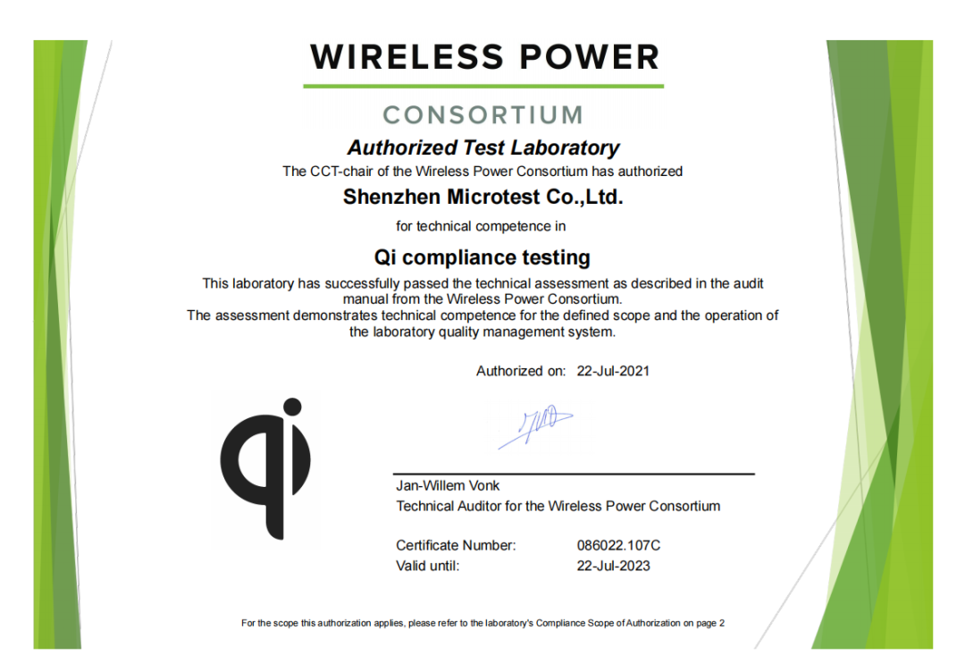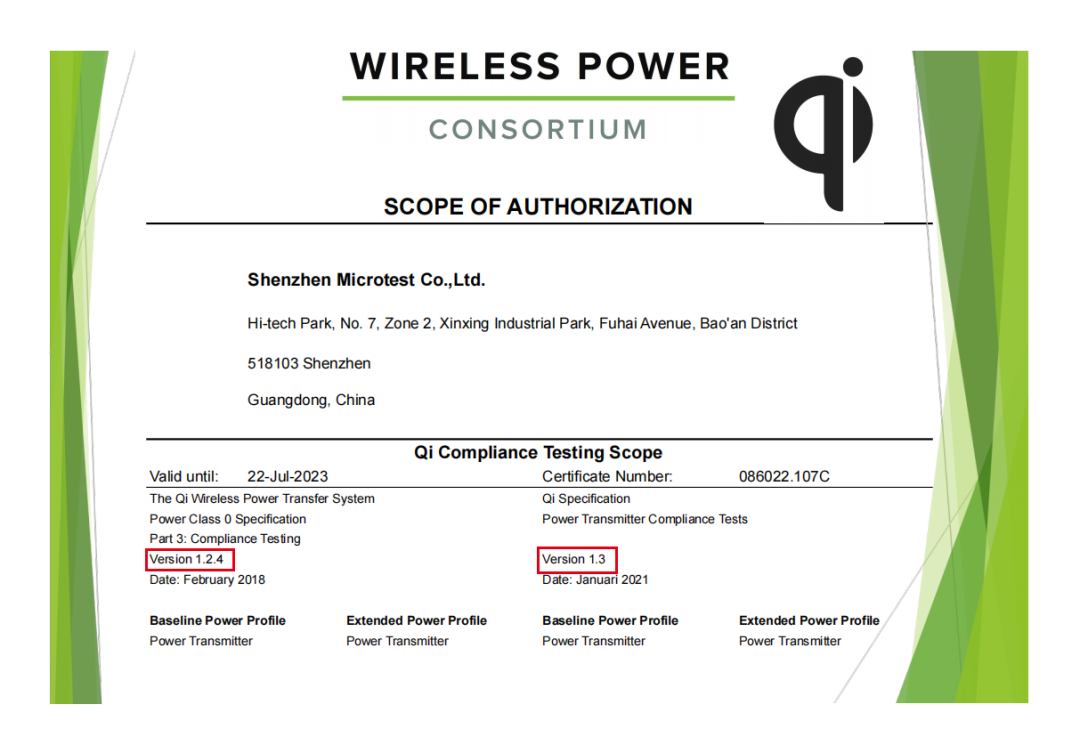 - 喜訊 | 微測檢測助力中國廠商獲得第一張無線充Qi1.3證書