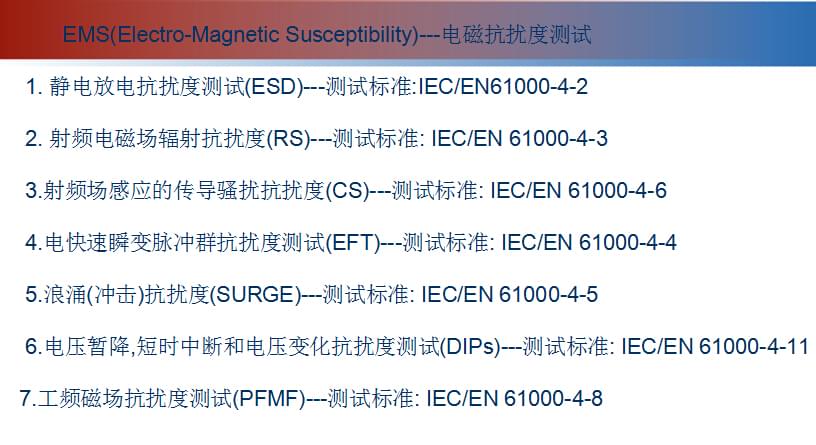 3.電磁抗擾度 EMS (Electro-Magnetic Susceptibility): 指在一個(gè)電磁干擾的環(huán)境中,裝置 整組設(shè)備或整套系統(tǒng)不會(huì)因處于此環(huán)境而減損其功能的能力。
