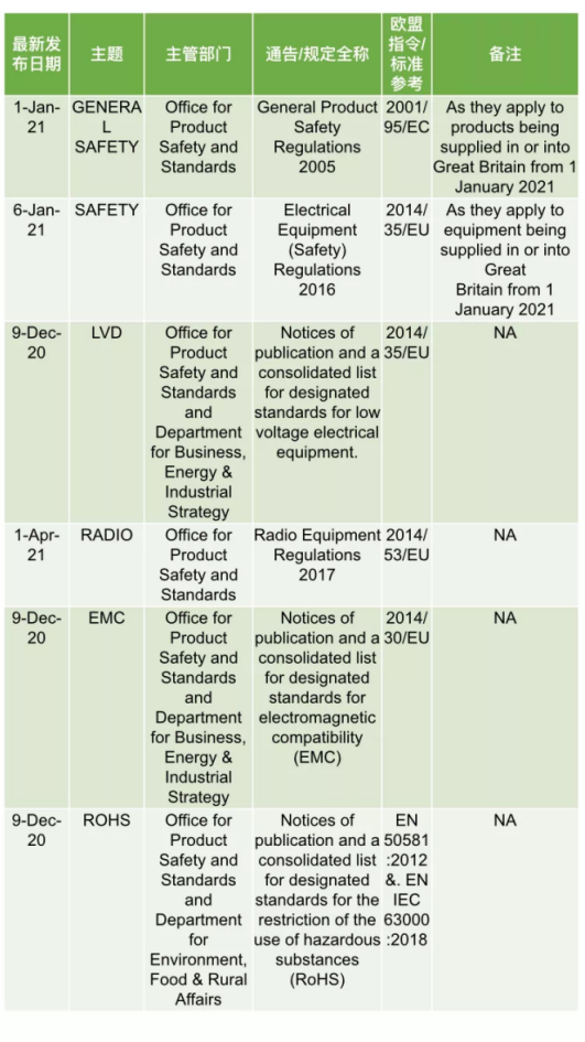 2.2、UKCA目前主要的產品指令與對應的歐盟指令: