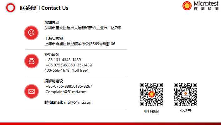 • 總部辦公地址:深圳市寶安區(qū)福洲大道新和新興工業(yè)園二區(qū)7號 微測檢測科技園